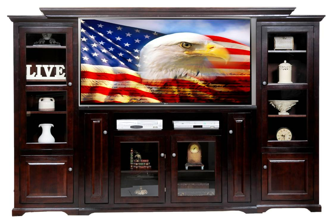 The American Heartland Manufacturing entertainment center showcases a beautiful wood finish with an elegant crown and rope molding. This furniture is truly an eye-catching piece in your living room, allowing you to showcase your decor or any display.Read More