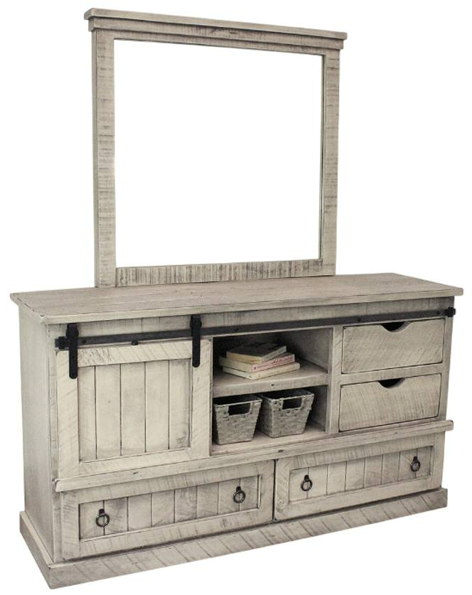 The American Heartland Manufacturing Rustic dresser and mirror combine timeless design with functionality. Featuring a sturdy dresser with an antique-inspired distressed finish, it offers ample storage space while enhancing your bedroom décor with rustic elegance and lasting charm.Read More