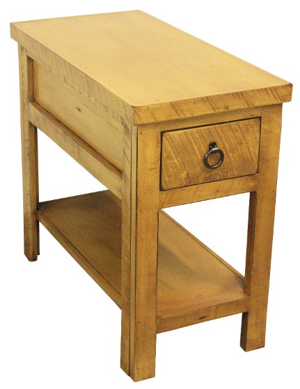 Elevate your space with this rustic chair table. It features a single drawer for storage and a lower shelf for display. Crafted with a rustic finish, it brings a touch of vintage appeal to any space. This table combines practicality with rustic elegance, making it a versatile addition to your decorRead More