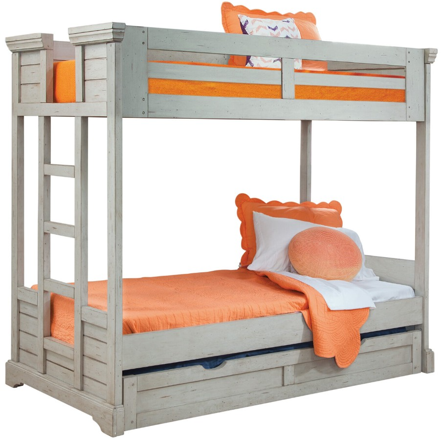 Transform your bedroom with this elegant American American WoodCrafters Stonebrook Light Distressed Antique Gray Twin/Full Bunkbed. Featuring a timeless design, sturdy construction, and refined detailing, it offers both style and durability. Perfect for creating a cozy, sophisticated space for restful nights and stylish mornings.Read More