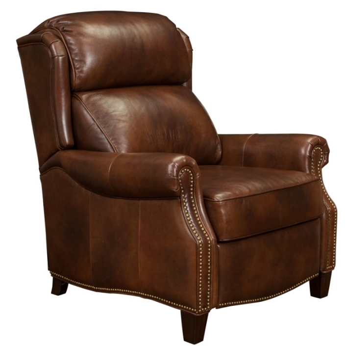Classic smaller scale wing back lounge chair recliner. 3-way push thru the arms mechanism with footrest extension. Kneed back rolled arms with copper finished nailhead trim. Adjustable semi-attached pub back, boxed loose seat cushion with pocketed coils, and down blend feather wrap.Read More