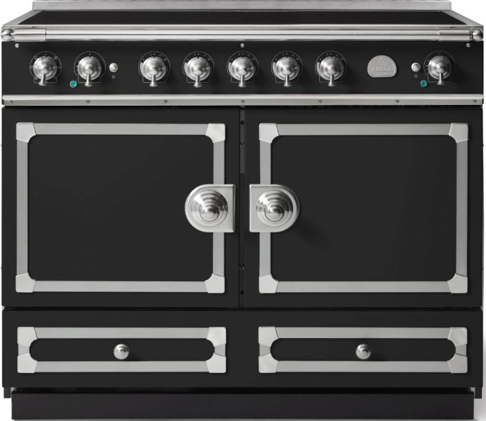 The original CornuFé range, this 43" range is your first La Cornue love. The CornuFé 110 features two electric convection ovens, one of which is a seven mode multifunction oven, five powerful gas burners, or a five zone induction rangetop constructed of durable ceramic glass that easily wipes clean and one large storage drawer.Read More
